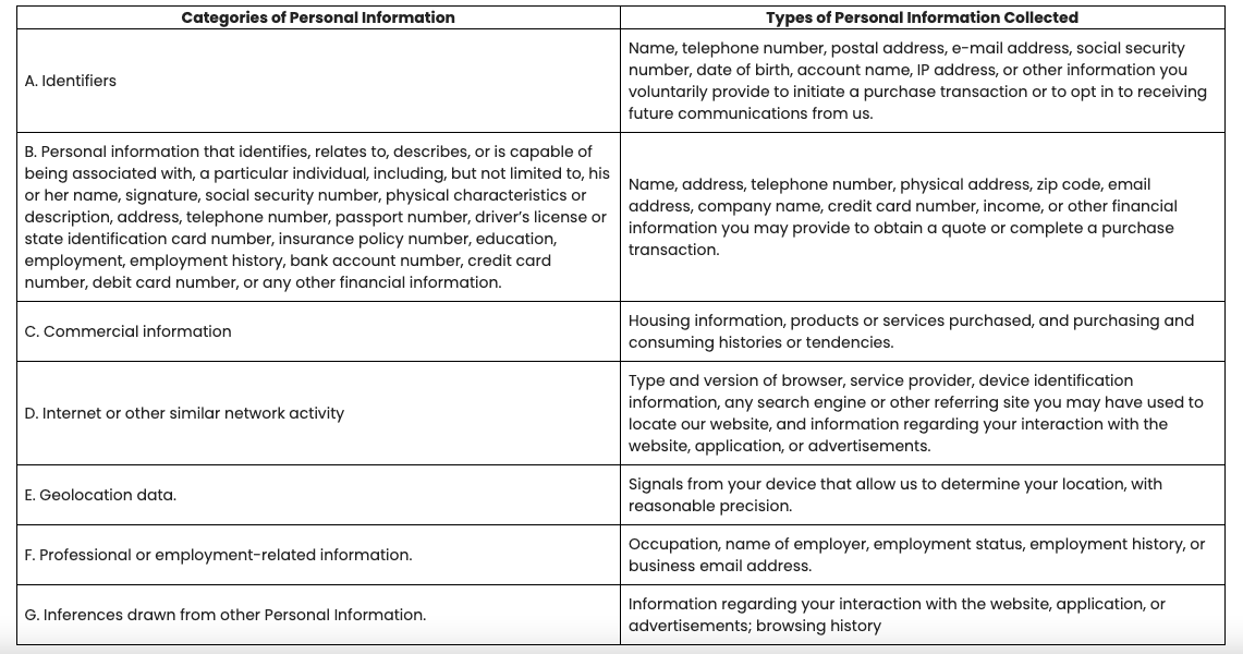 We may collect information that identifies, relates to, describes, references, is capable of being associated with, or could reasonably be linked, directly or indirectly, to you ("Personal Information"). In particular, our website has collected the following categories of Personal Information within the last twelve (12) months: